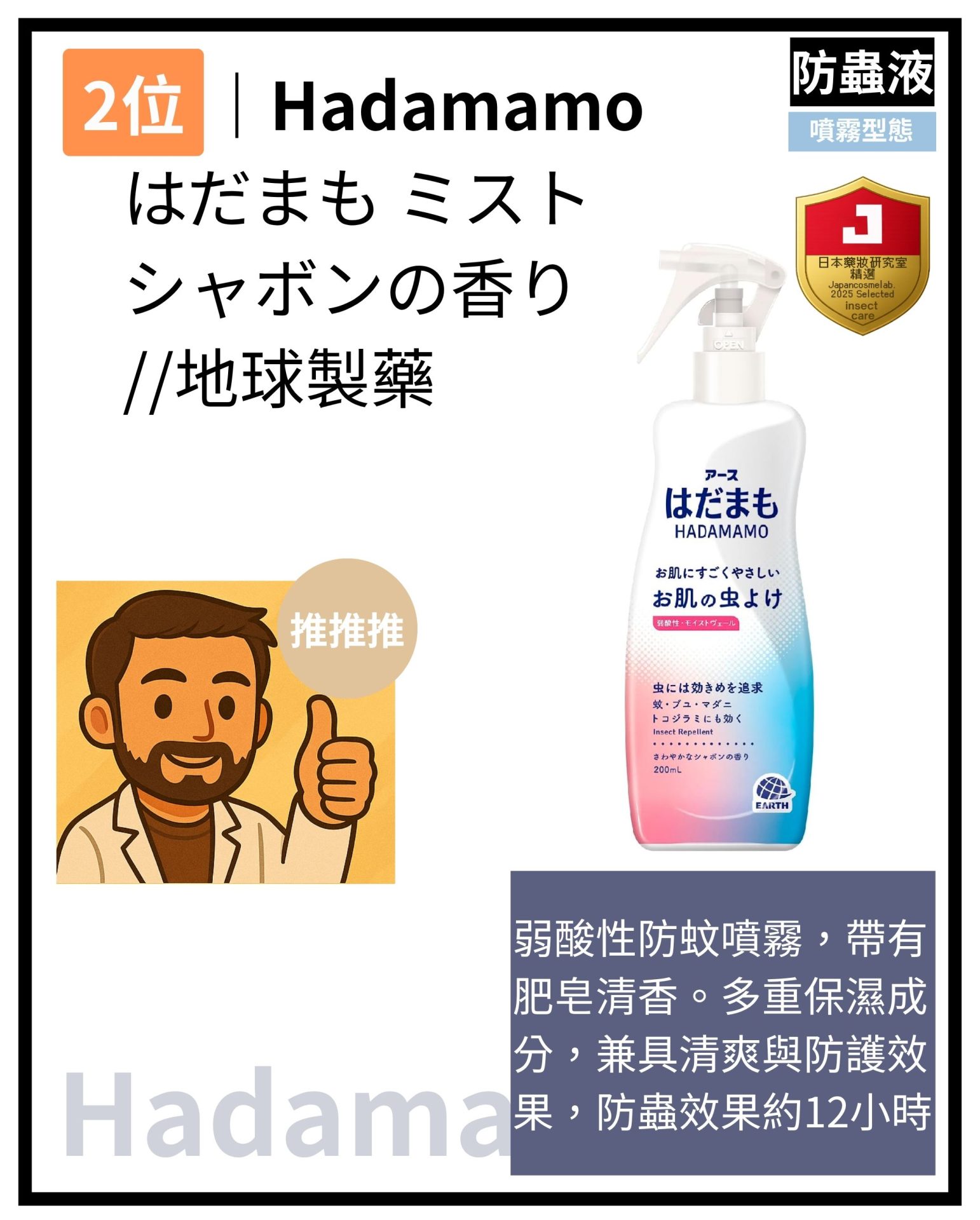 • Feature:弱酸性防蚊噴霧,帶有肥皂清香。多重保濕成分,兼具清爽與防護效果,防蟲效果約12小時