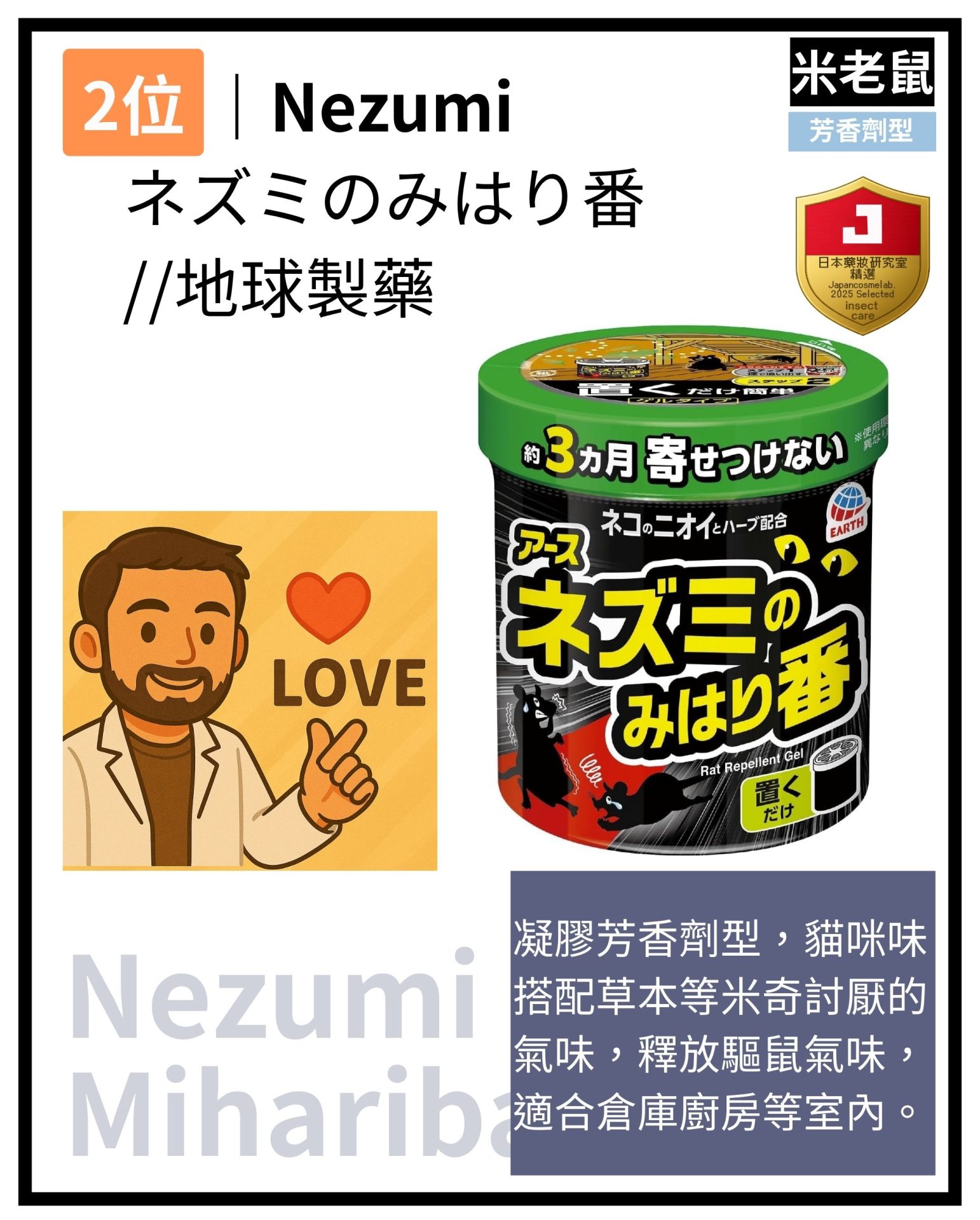 • Feature: 凝膠芳香劑型,貓咪味搭配草本等米奇討厭的氣味,釋放驅鼠氣味,適合倉庫廚房等室內。